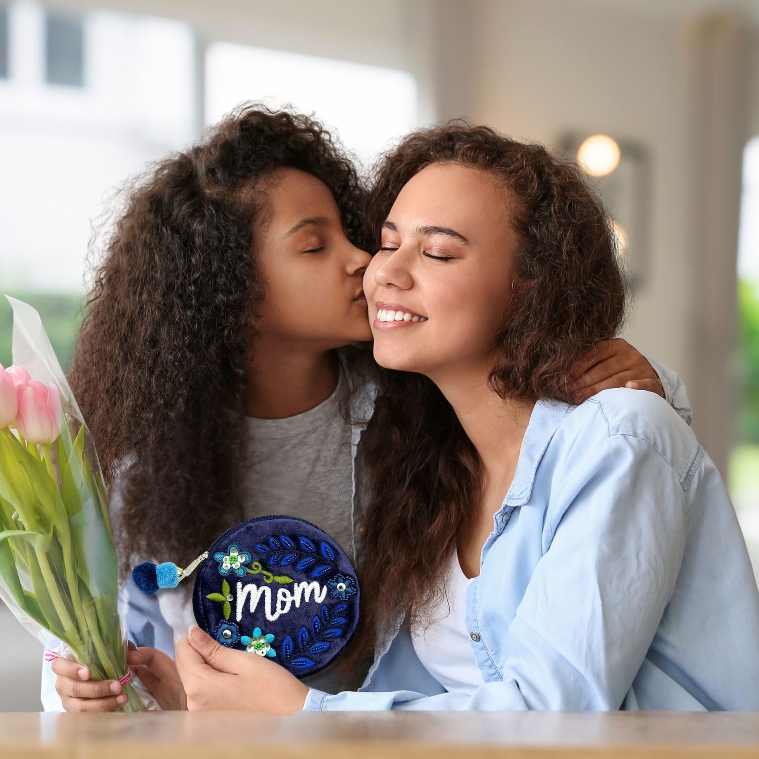 Treat Mom to a charming keepsake she’ll use every day. This plush navy coin purse features embroidered florals, sparkling sequins, and a soft “Mom” script that feels warm and personal. Perfect for coins, keys, or a tiny token of appreciation, beautifully crafted and ready to gift.