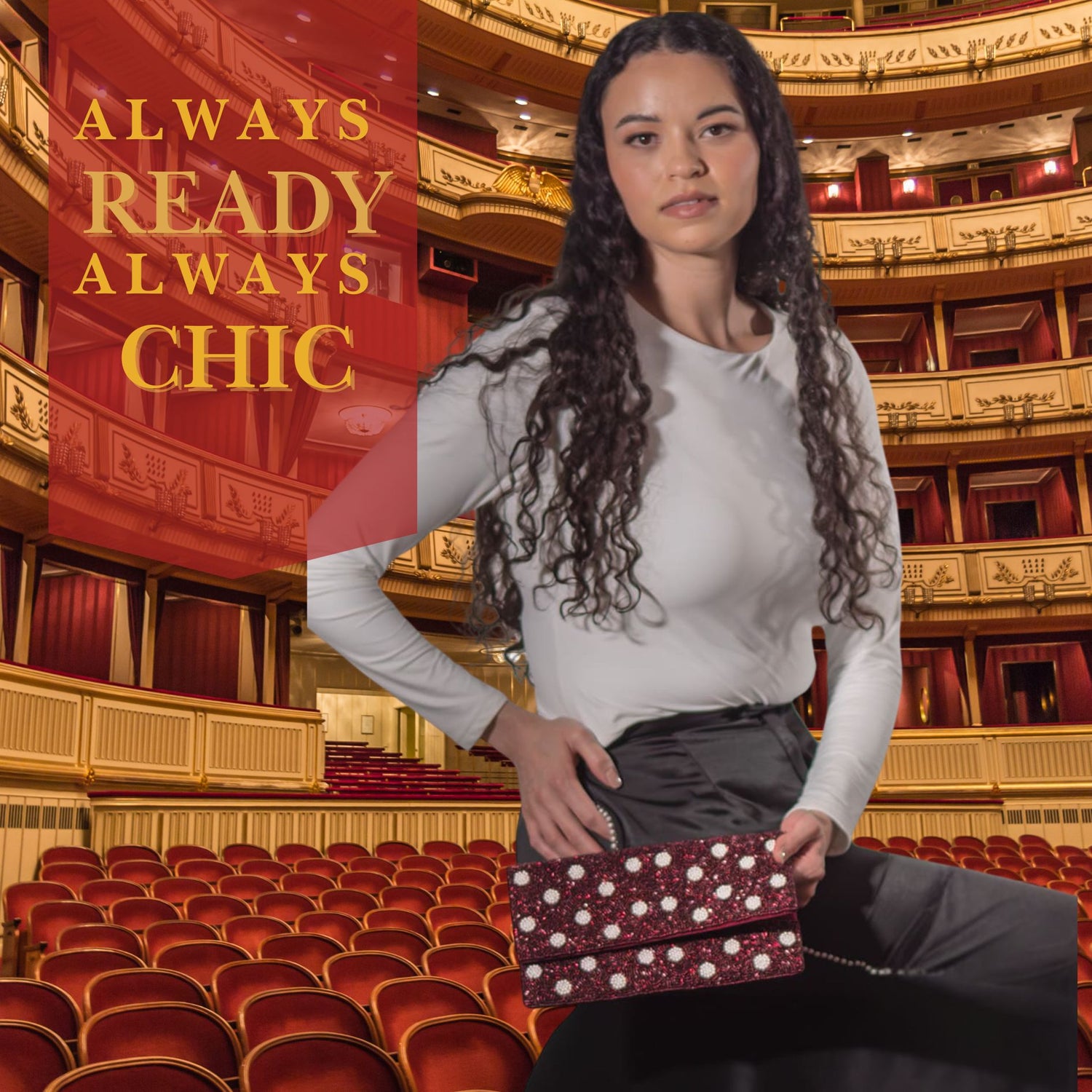 Make a bold yet timeless statement with this beautifully beaded clutch. The deep red base and shimmering white polka dots create an elegant contrast that’s perfect for dinners, parties, or holiday nights out. Spacious enough for your essentials and stylish enough to steal the spotlight, your new go-to glam accessory.