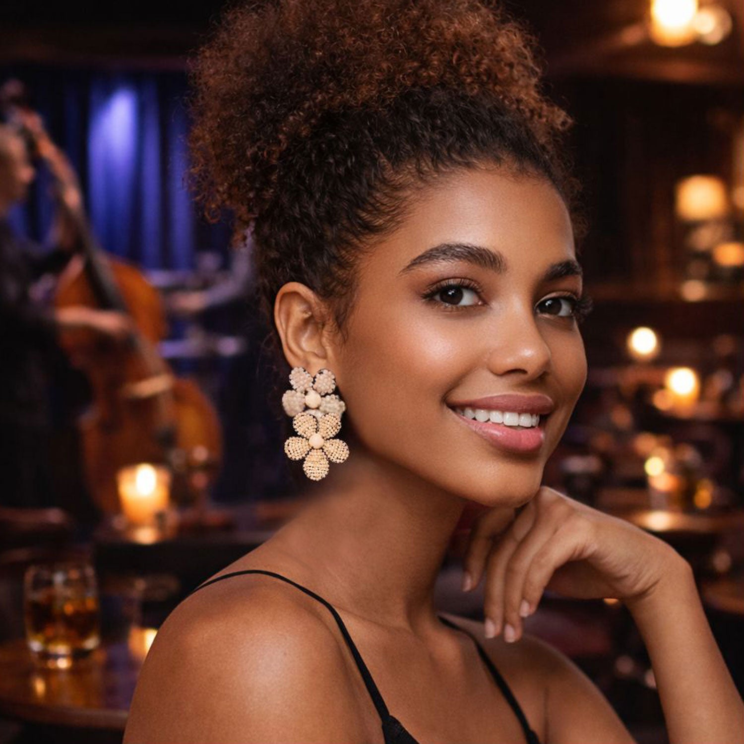 Delicate and beautifully balanced, these beaded flower earrings bring soft elegance to any look. Crafted in warm nude and in pink tones with layered petal details, they’re understated yet eye-catching. Perfect for everyday wear, brunch dates, or weddings, they add a gentle statement that feels polished, feminine, and endlessly versatile.