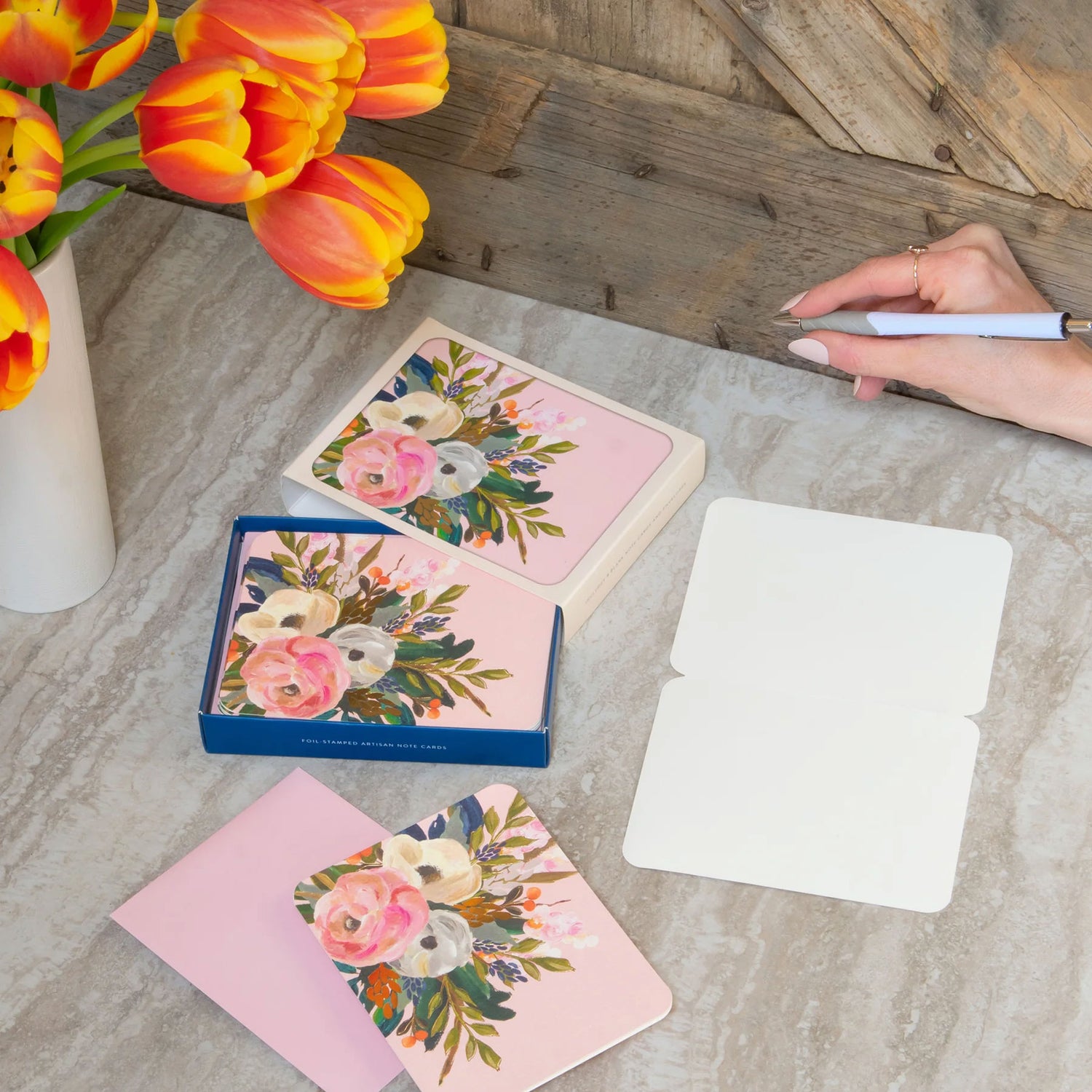 The curated note cards are designed to provide plenty of blank writing space for all handwritten messages. The textured art paper is durable, and the rounded corners give it a modernized, sleek style. The set comes with 8 cards showcasing original artwork.