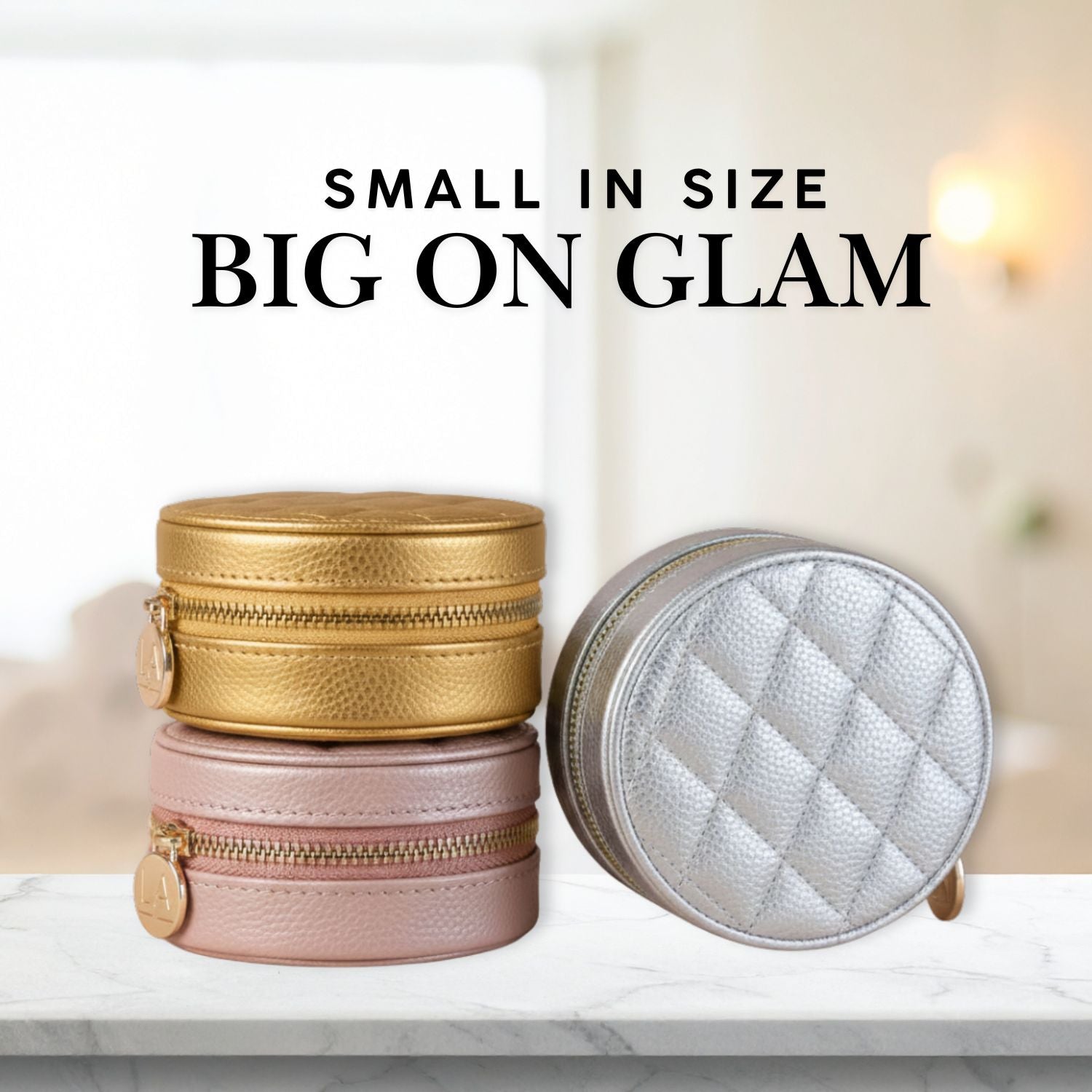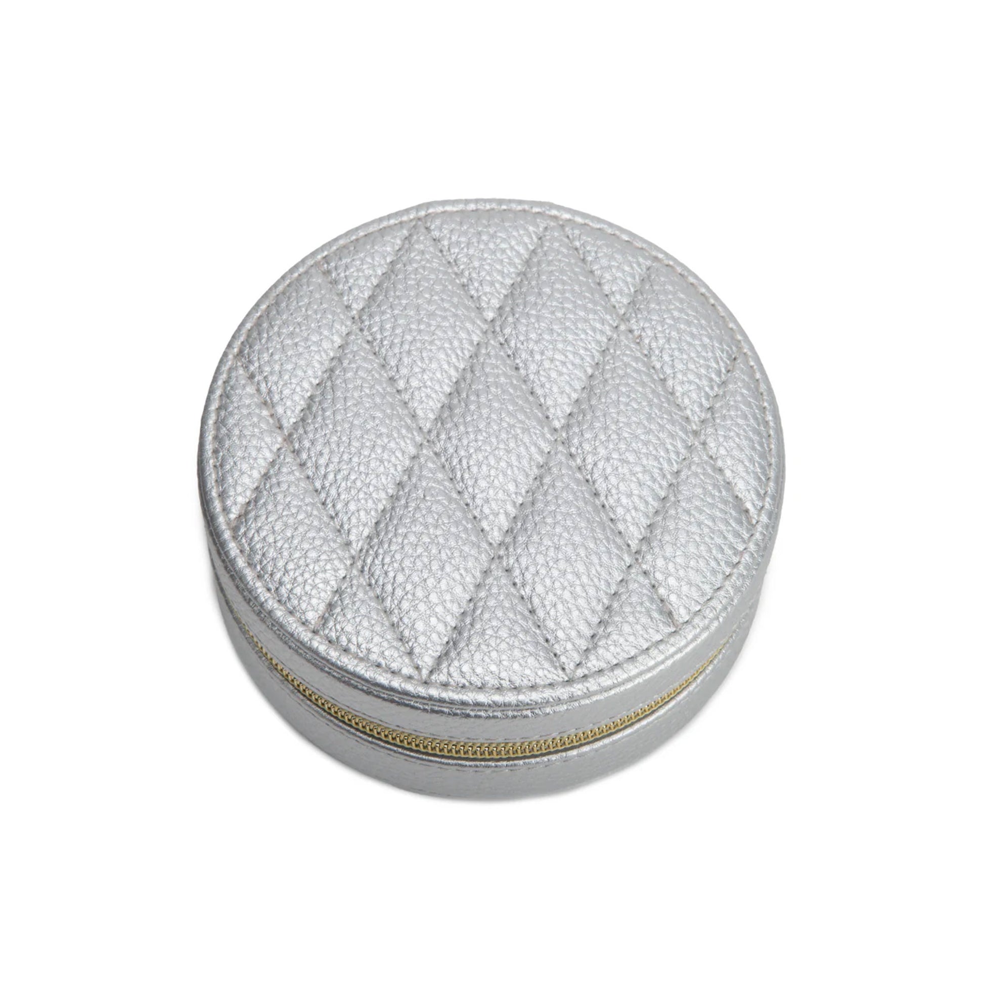 Introducing Leah Quilted Round Travel Jewelry Case, crafted with premium quilted vegan leather, this stylish case is a practical storage solution. Not just for travel, it is perfect for everyday use as well. Keep it on your dresser or vanity for easy access to your go-to pieces or take it with you to the gym or office. Compact and lightweight, it fits effortlessly in your purse or luggage, making it the ideal companion for any occasion.