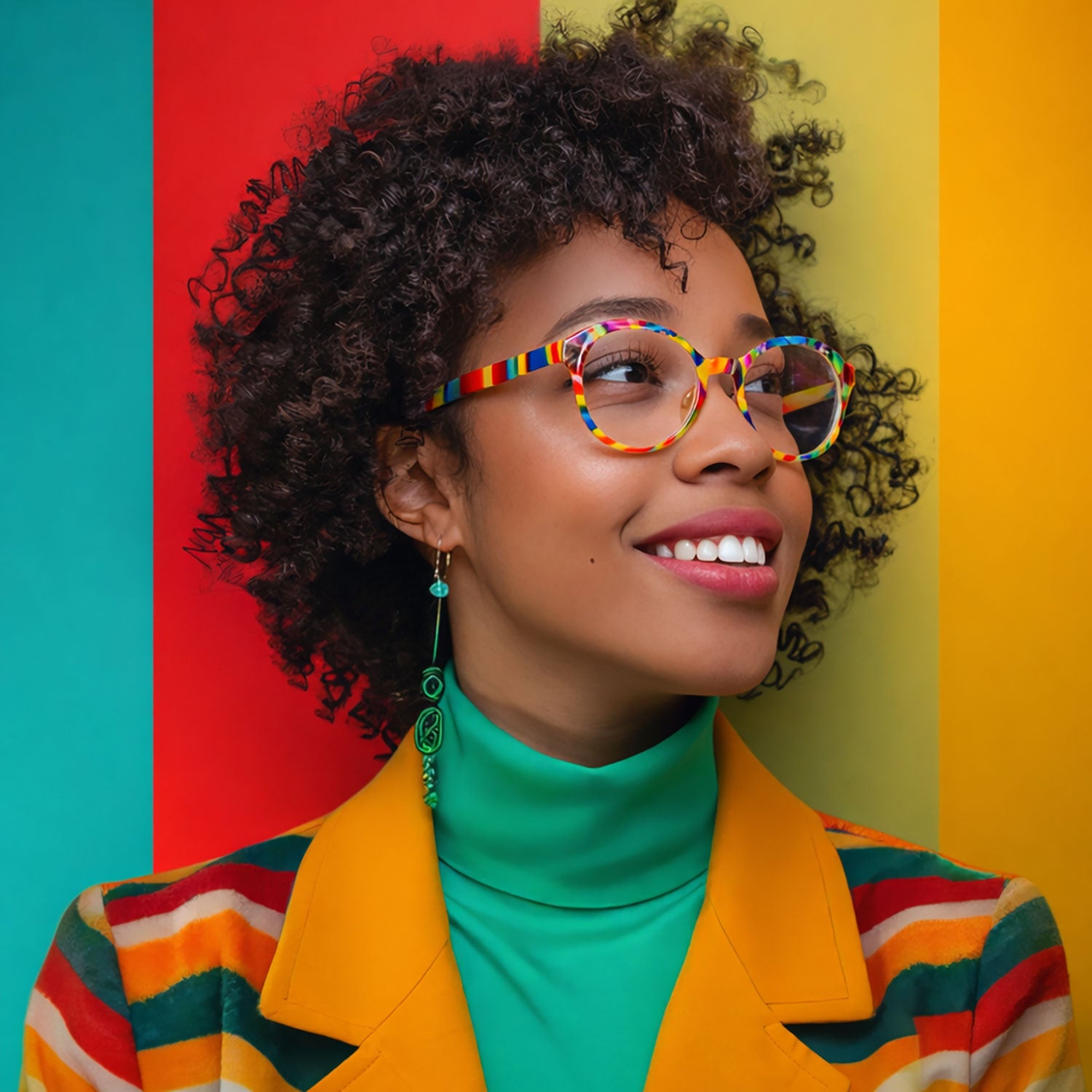 - Statement temples with a striped, fashion-inspired pattern