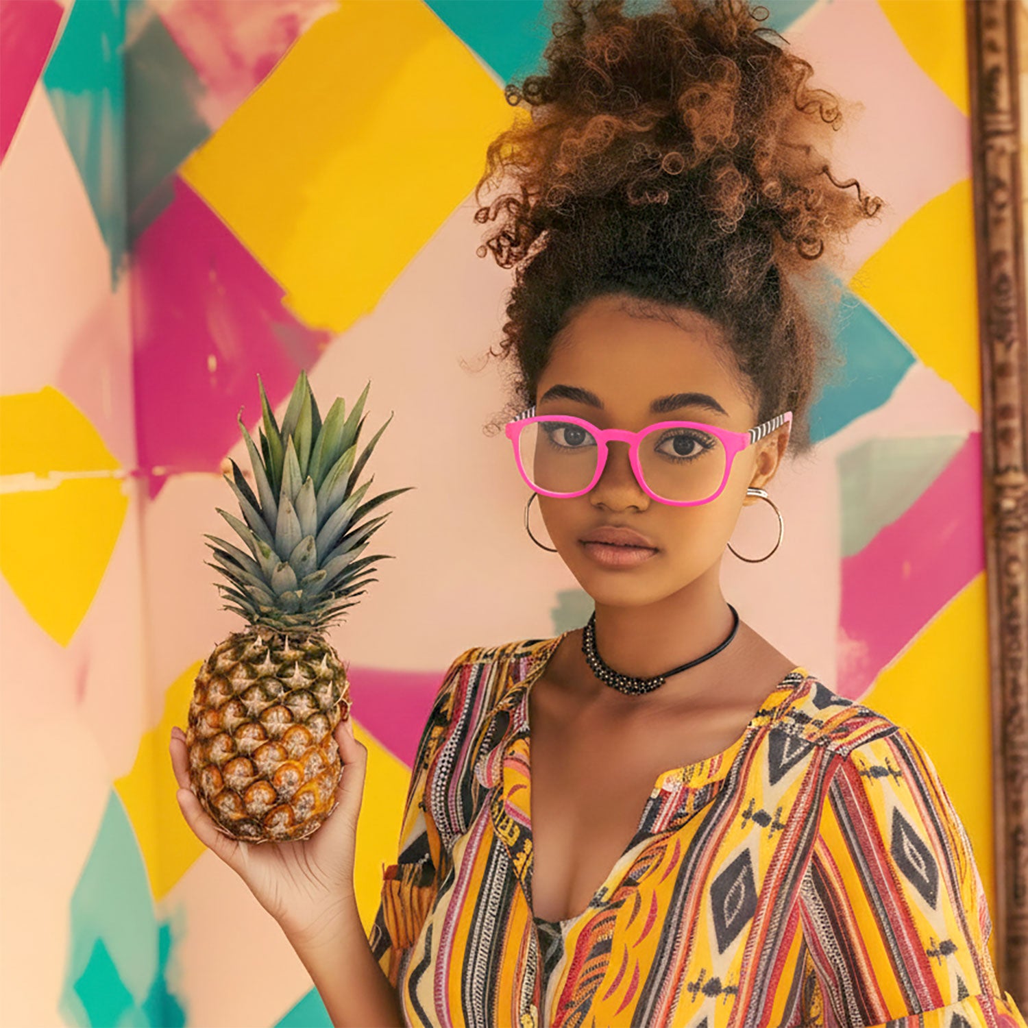 - Translucent pink frame with a modern shape
