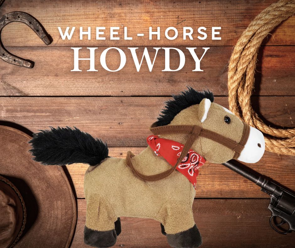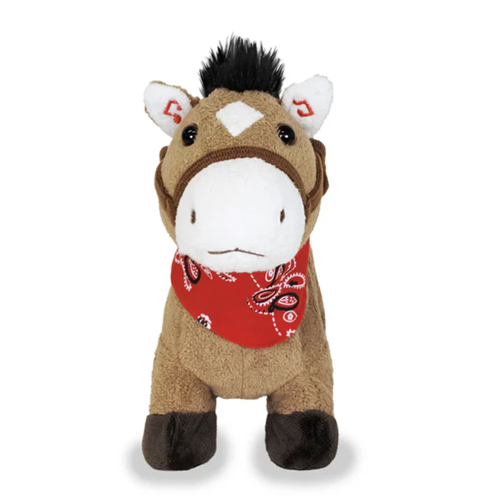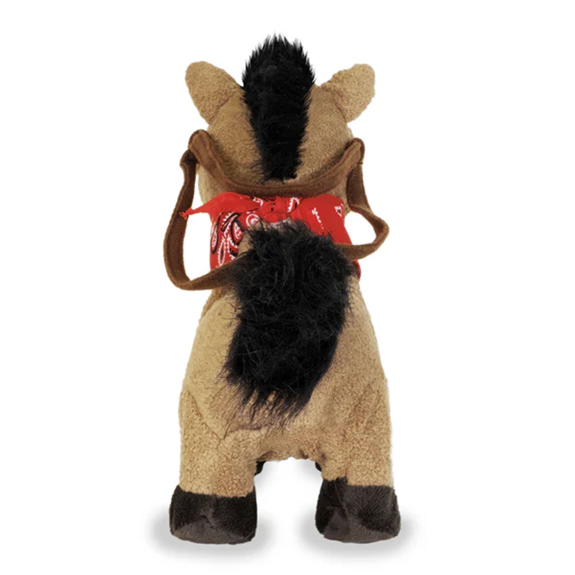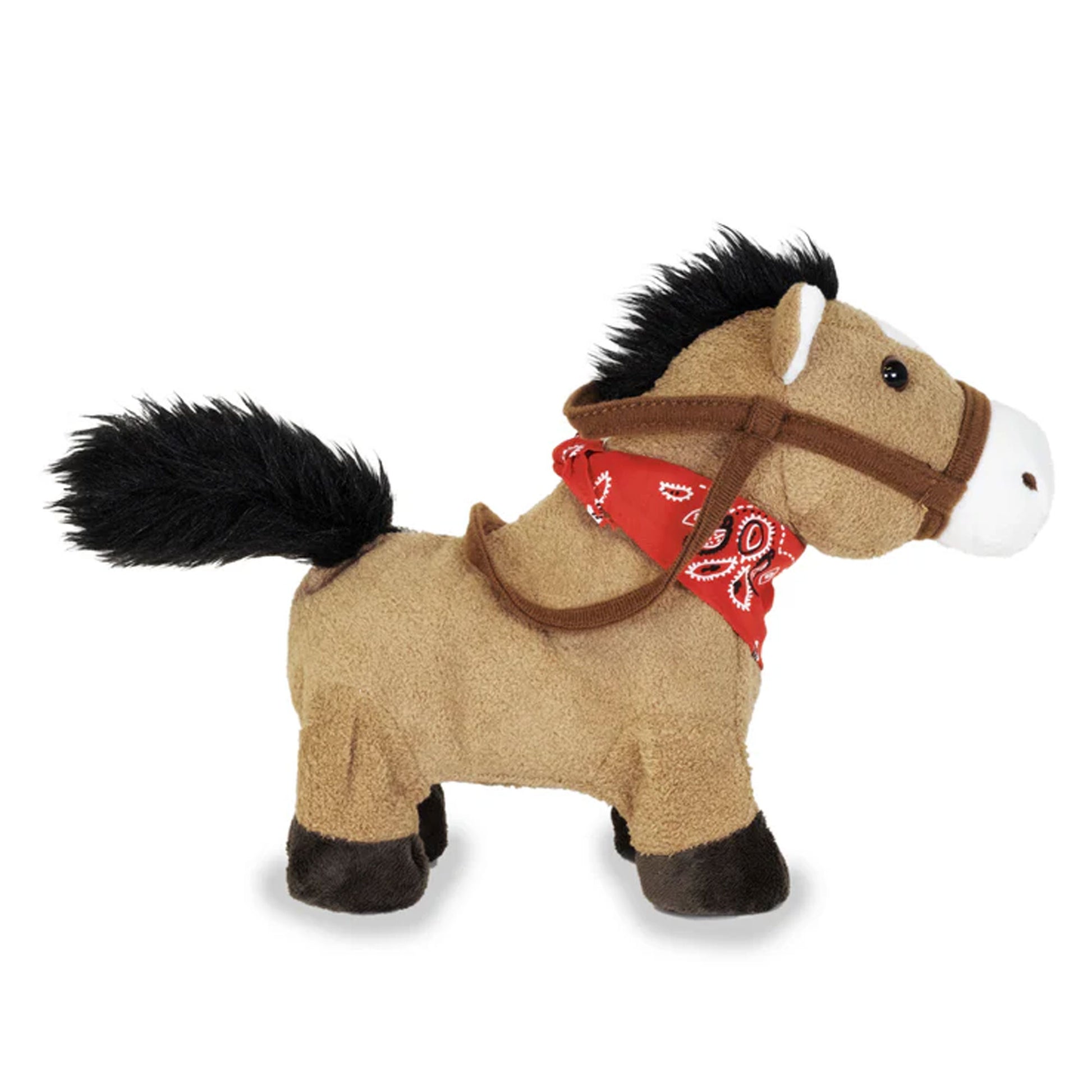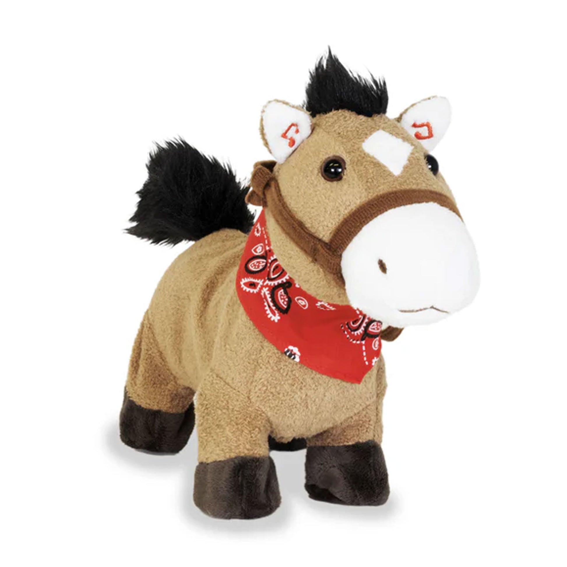 Meet your little cowboy’s favorite sidekick! This adorable walking horse trots along and sings “Giddy Up Lil Cowboy”, bringing fun, music, and western charm to playtime. With his soft plush coat and red bandana, he’s ready for every adventure on the trail!