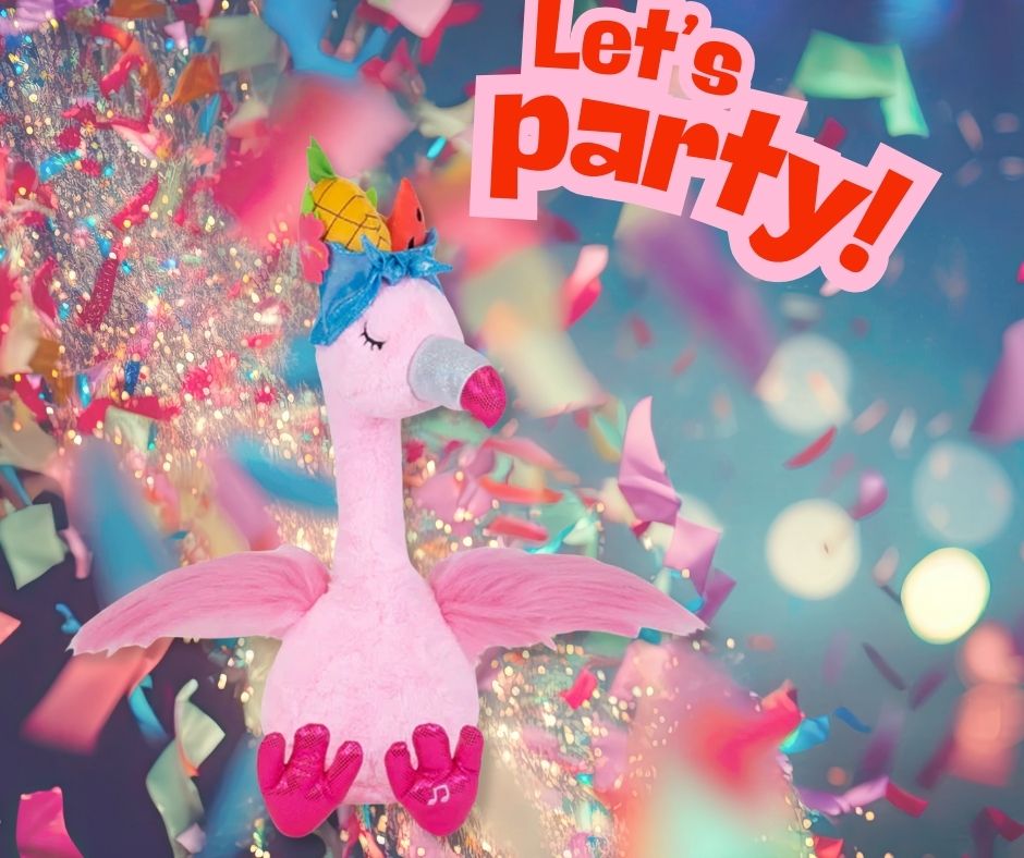 Meet Paradise Penny, the pink party queen! She flaps her wings and grooves to “Jump in the Line (Shake Senora)”, turning any moment into a Caribbean dance break. Bright, tropical, and full of personality, Penny brings instant sunshine wherever she goes. Ask Marty and Donna :-)